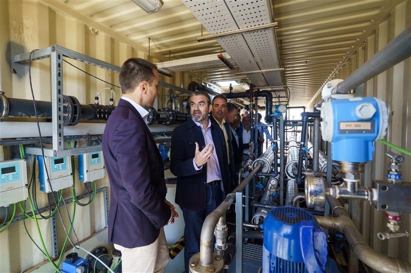 La jornada comenzó con una visita a la estación depuradora de aguas residuales de Vera (EDAR), donde Codeur ha incorporado una nueva unidad de tratamiento avanzada, desarrollada por Aqualia, que permite ensayar en condiciones reales un proceso de postratamiento basado en tecnología de ósmosis.